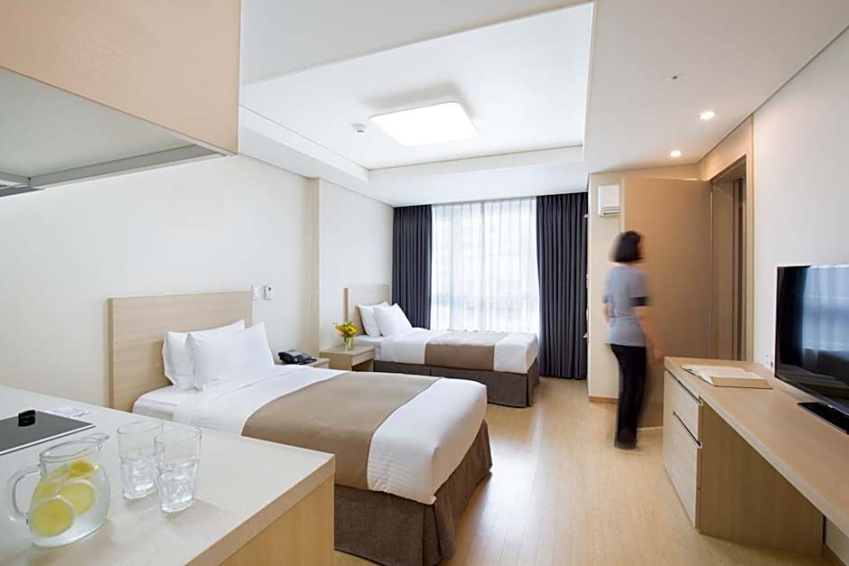 Featuring free toiletries and bathrobes, this twin room includes a private bathroom with a shower, a bidet and a hairdryer. The twin room's kitchen, which has a refrigerator and kitchenware, is available for cooking and storing food. The air-conditioned twin room features a flat-screen TV with cable channels, soundproof walls, a mini-bar, a tea and coffee maker as well as city views. The unit has 2 beds.